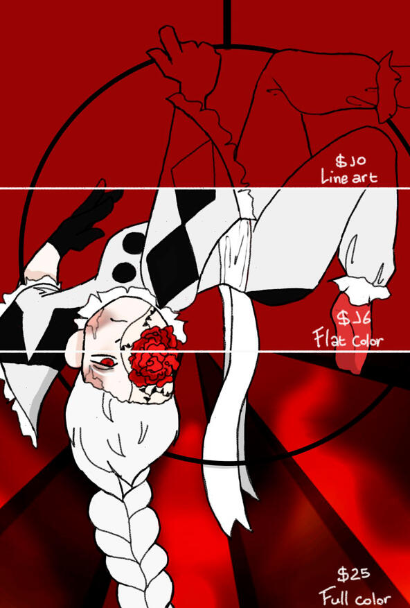 Contact me through Bluesky's DMs, Tumblr or Twitter. Send me a description of what you want for me to draw; if you have the inspiration pictures it's even better! Now, I'll only start the artwork if 50% of my payment is realized. The payment method it's through: Paypal.
